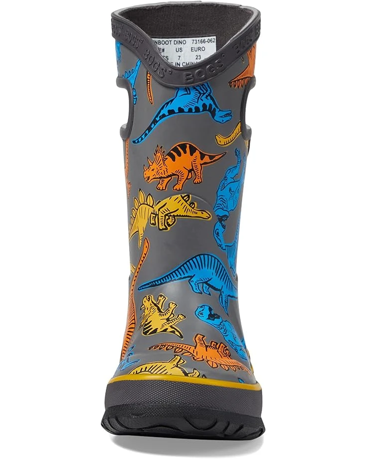 - Keep your little one’s feet toasty by opting for the protective Bogs® Kids Rain Boots Super Dino. The pull-on waterproof footwear features rubber upper construction with easy-on handles, four-way stretch inner bootie, drill lining, and removable BLOOM™ EVA footbed.
